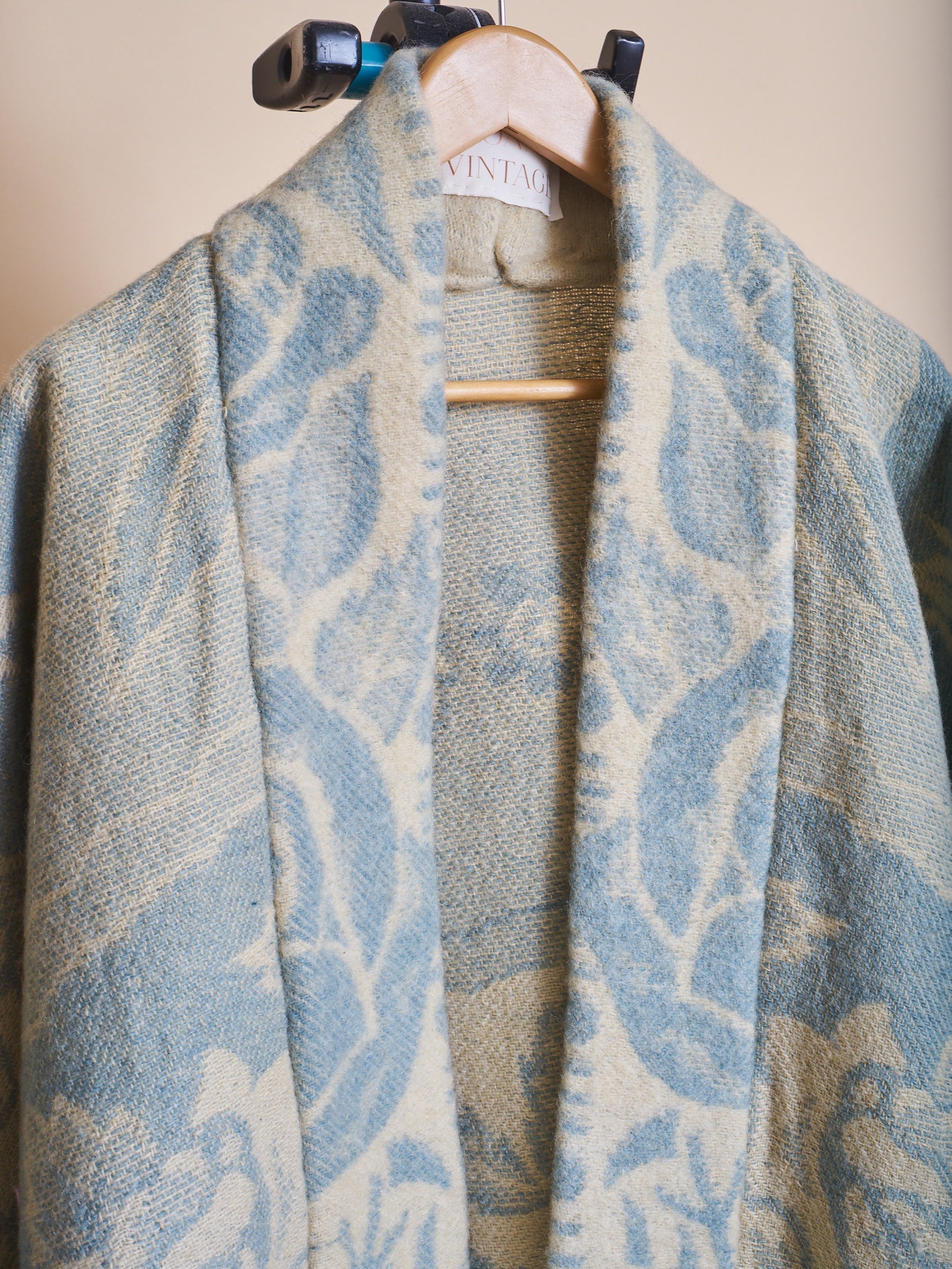 Moana Vintage Repurposed Blue Floral Kimono Blanket Coat